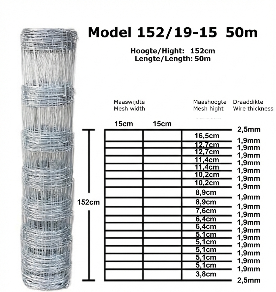 - Door het lichte gewicht is het schapengaas makkelijk te verwerken en ideaal voor grotere oppervlaktes, zonder hoge kosten.
