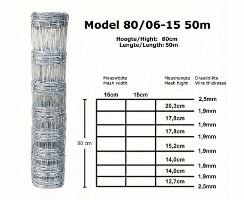 Het lichte schapengaas is gemaakt van verzinkt afrasteringsdraad, waardoor het bestand is tegen roest en weersinvloeden. Zo profiteer je van een lange levensduur tegen een lage prijs.
