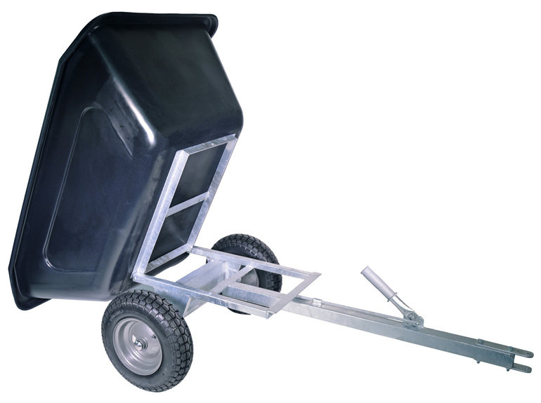 Kunststof HDPE bak 350 liter. Gegalvaniseerd frame met kiepbare bak en bakvergrendeling. Wielen 400x8 2ply extra zwaar met metalen velg, kogellagers en binnenband. Exclusief kogelkoppeling. Lees meer