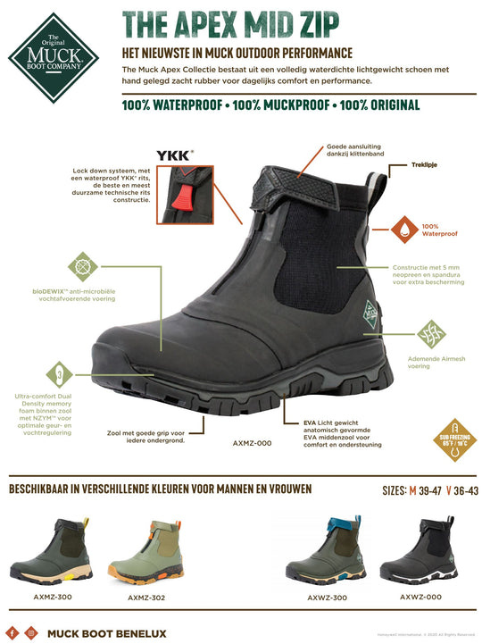 Muckboot - Apex Zip Zwart/Wit - Dames