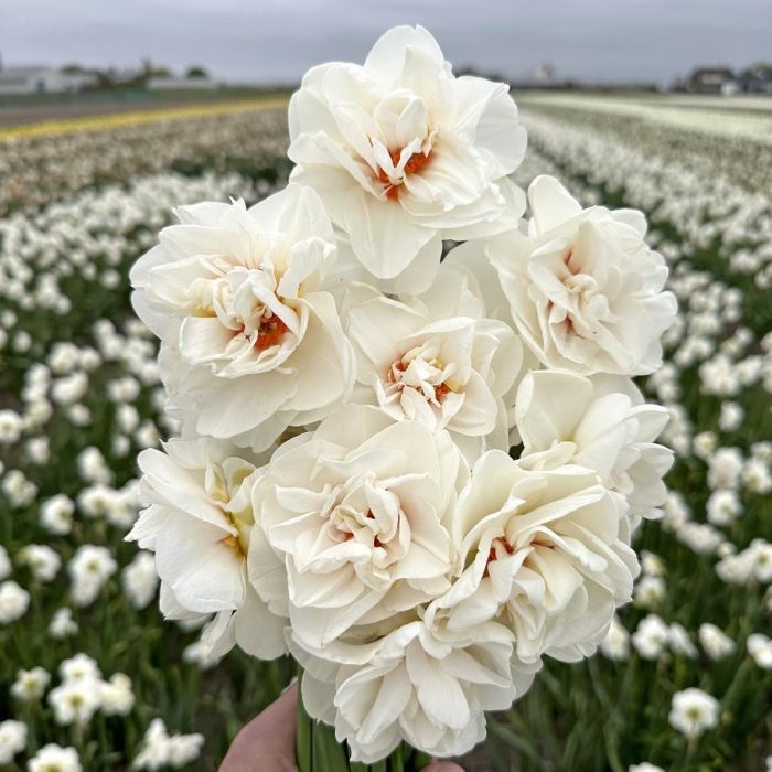 Narcis Acropolis geeft mooie romantische dubbele bloemen. Fris wit met in het hart van de bloem oranje blaadjes voor een pittig accent. Bovendien heeft narcis Acropolis een heerlijke zoete geur.