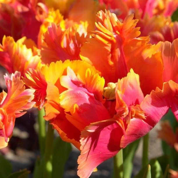 Roze, oranje of geel? Alle kleuren komen terug in deze kunstzinnige parkiettulp. Wat een wonderlijk exemplaar. Je krijgt toch gewoon zin in het voorjaar?