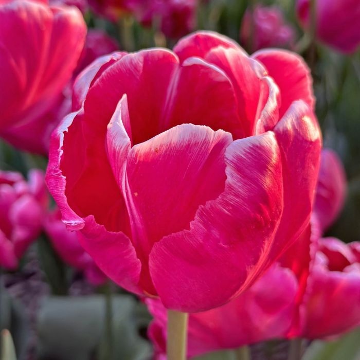 Deze donkerroze parkiettulp heeft ook nog een subtiel wit randje. Wanneer ze bloeit gaan de bloemen helemaal open. De bloemblaadjes van tulp Cracker Parrot hebben subtiel gedraaide en gegolfde randen. Parkiettulpen worden lang en hebben ranke stelen dus z Lees meer