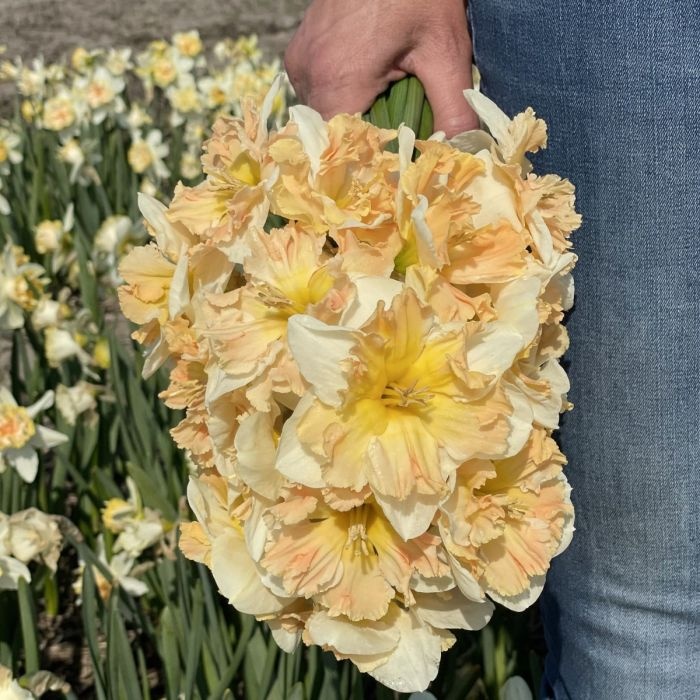 Wat een mooie zachte kleurencombinatie heeft deze narcis genaamd Edinburgh. Een bleek-oranje kroon met fris witte bloemblaadjes. Lekker chique! Bloeit midden in het voorjaar en wordt zo'n 30cm. lang.