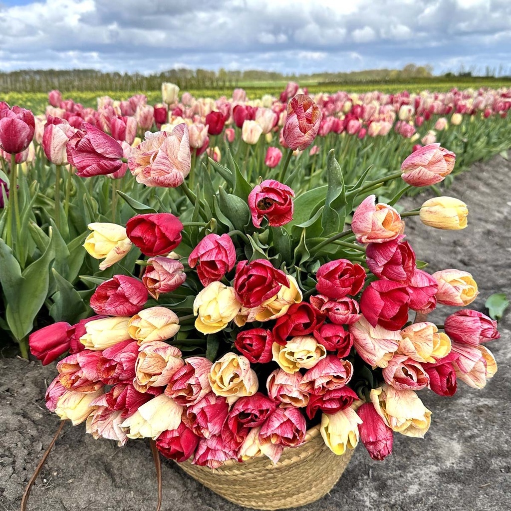 Je hoeft zelf niet te zoeken naar bijpassende kleuren, deze tulp Kanok is van zichzelf al het perfecte mengsel van kleuren. Naarmate de bloemen rijper worden, verschijnt een speels mengsel van vlekjes, sproeten en vage strepen. Deze ontwikkelen zich in verschillend tempo in de kleuren donkerroze, rood en créme wit. Tulp Kanok doet ons denken aan de ouderwetse Rembrandt tulpen. Deze tulpen werden vernoemd naar de beroemde Nederlandse schilder Rembrandt van Rijn, omdat de kleuren en patronen op de bloemblaadjes lijken op de penseelstreken van een kunstwerk.