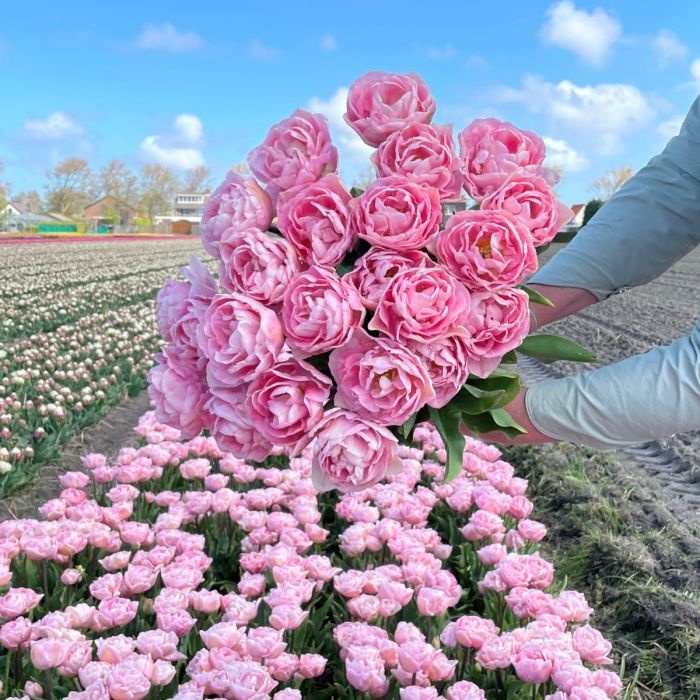 Tulp Mariage heeft het allemaal in zich! Een romantisch roze kleur en grote dubbele pioenbloemen. Ze bloeit redelijk vroeg en geeft middellange stelen. Tulp Mariage is een aanrader voor in het trouwboeket! Lees meer