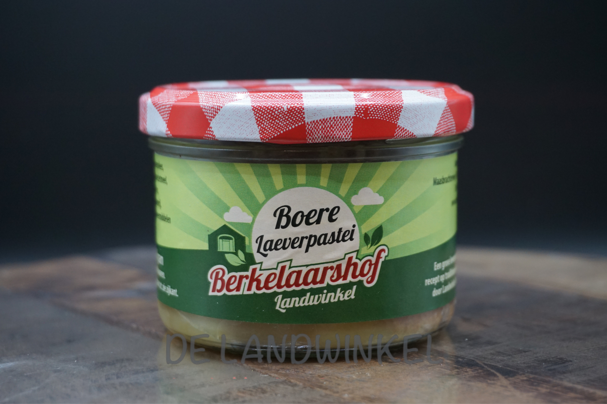 De boerenleverpastei van De Berkelaarshof weegt circa 200 gram en is een ambachtelijk bereid streekproduct vol karakter. Gemaakt van varkenslever en specerijen, is deze pastei smeuïg van structuur en rijk van smaak. Het vlees is afkomstig van varkens die op kleinschalige, diervriendelijke wijze worden gehouden op de Limburgse akkers en graslanden van het familiebedrijf. Dankzij het voedzame voer van eigen teelt ontstaat een pure, volle smaak die je proeft bij elke hap.