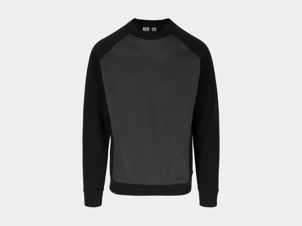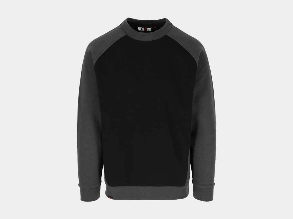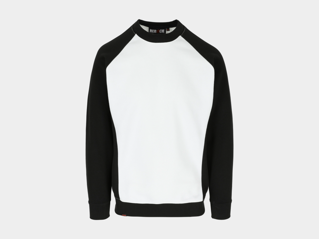 Tweekleurige Herock Boris sweater met ronde hals en ribafwerking, gemaakt van katoen en gerecycled polyester. Lees meer