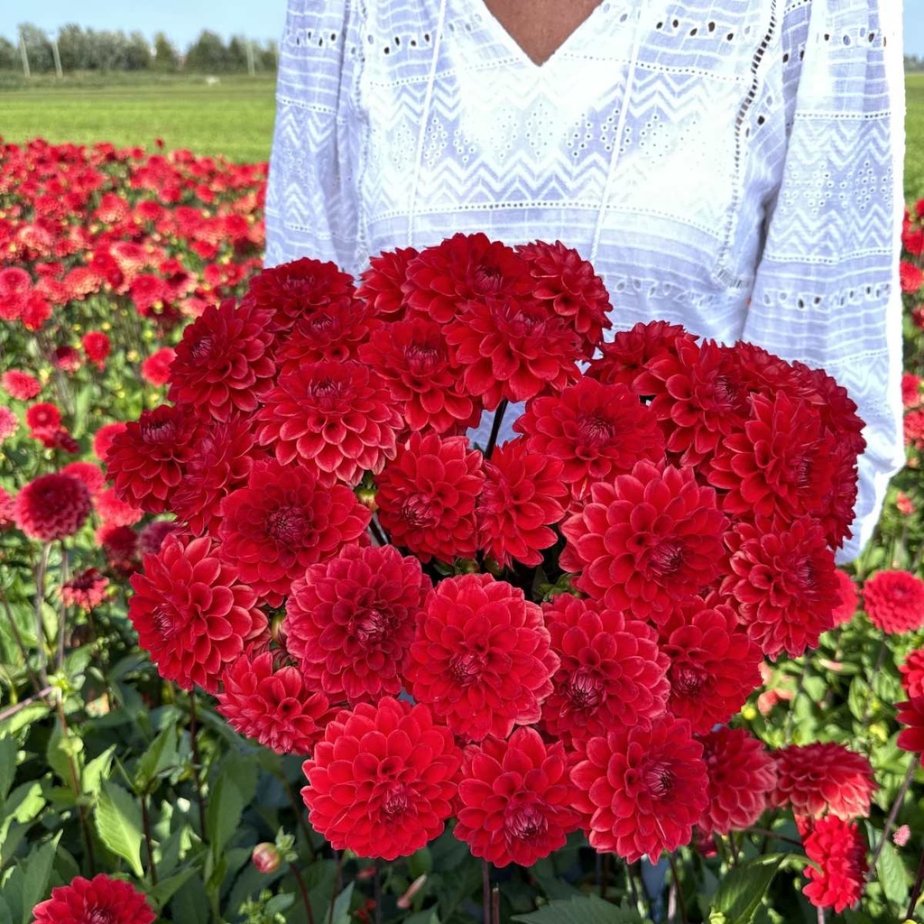 Met een hoogte van 100cm. groeit de Red Cap stevig en compact, wat hem ideaal maakt voor zowel bloembedden als potten. Of hij nu in de voortuin staat of een prominent plekje in een bloementuin inneemt, deze dahlia voegt direct energie en leven toe aan de omgeving. De Red Cap is niet alleen perfect voor tuinen, maar ook een uitstekende keuze voor boeketten, waar hij met zijn felrode kleur een krachtig statement maakt. Het is de perfecte bloem voor wie zijn tuin wil vullen met vurige, levendige tinten.