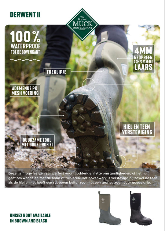 De ideale instap laars van het Muck Boot assortiment. Comfortabel voorgevormd voetbed. Geschikt voor o.a. gebruik in de tuin, bos en heide. Prima laars met verstevigde neus en hiel. Goede grip dankzij het grove patroon van de rubberen zool. Ideale laars voor heren en dames met een bredere voet.