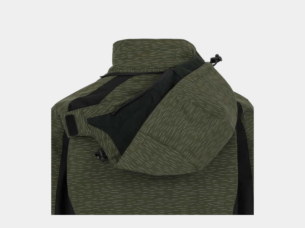 De Herock Flexor jas combineert veiligheid, comfort en stijl. Dankzij de reflecterende all-over print en details ben je ook in het donker goed zichtbaar. Het ademende membraan (3000 mvp) en de waterdichtheid van 8000 mm zorgen dat je droog en comfortabel blijft, zelfs bij nat en winderig weer. De jas is gemaakt van een 3-laags softshell met stretch voor optimale bewegingsvrijheid en een zachte microfleece voering voor extra warmte. Voorzien van een borstzak en twee steekzakken, verstelbare manchetten en een elastisch trekkoord onderaan. De afneembare kap maakt de jas extra veelzijdig.