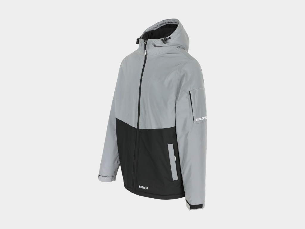 De Herock Fluxus jas combineert maximale zichtbaarheid met bescherming tegen weer en kou. Het reflecterende bovendeel voldoet aan de EN 17353 B3-norm, waardoor je ook in donkere omstandigheden goed opvalt. De jas is volledig waterdicht (5000 mm) en winddicht, met een verlengd rugpand voor extra dekking.