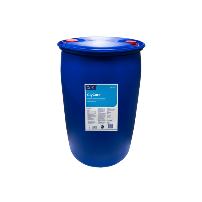 Topro Glycare is een energierijk product gebaseerd op glycerine. Glycerine heeft als functie dat het een smakelijke energiebron is die veel glucogene energie bevat wat goed en snel om te zetten is in het lichaam. De energiebron glycerine is goed in te zetten om de voeropname bij verse koeien te ondersteunen.