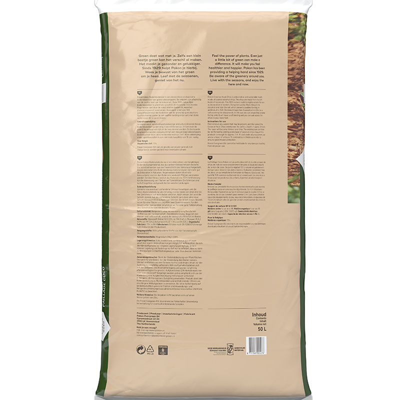Pokon Kokos Bodembedekker is 100% natuurlijk en is uitermate geschikt voor het bedekken van speelplaatsen (TÜV gecertificeerd). Pokon Kokos Bodembedekker kan ook gebruikt worden in potten en plantenbakken als decoratie boven op de grond. Door kokossnippers over de grond te strooien droogt de grond minder snel uit en krijgt onkruid minder kans. Pokon Kokos Bodembedekker is zeer duurzaam en goed beloopbaar. Daarnaast is het ook nog eens erg decoratief.