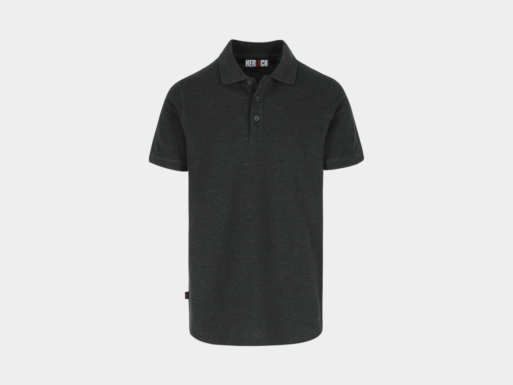 - Donker heather grijs: 60% organisch katoen – 40% polyester piqué