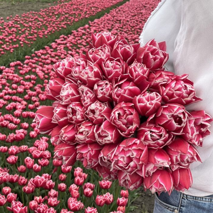 Laat je betoveren door een tulpensymfonie in zachte pastel‑ en cremewitten—alsof pioenrozen zichzelf hebben vermenigvuldigd tussen de stelen. Lees meer