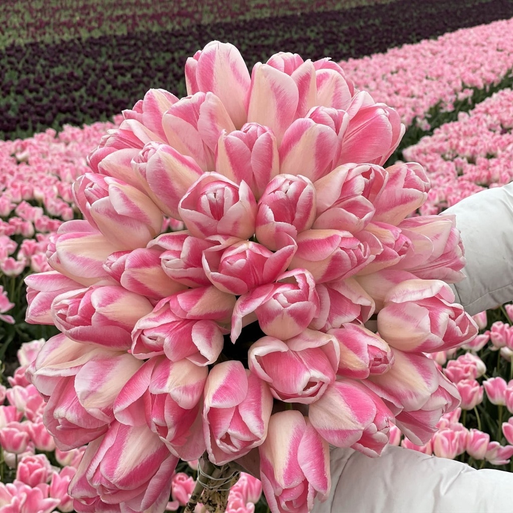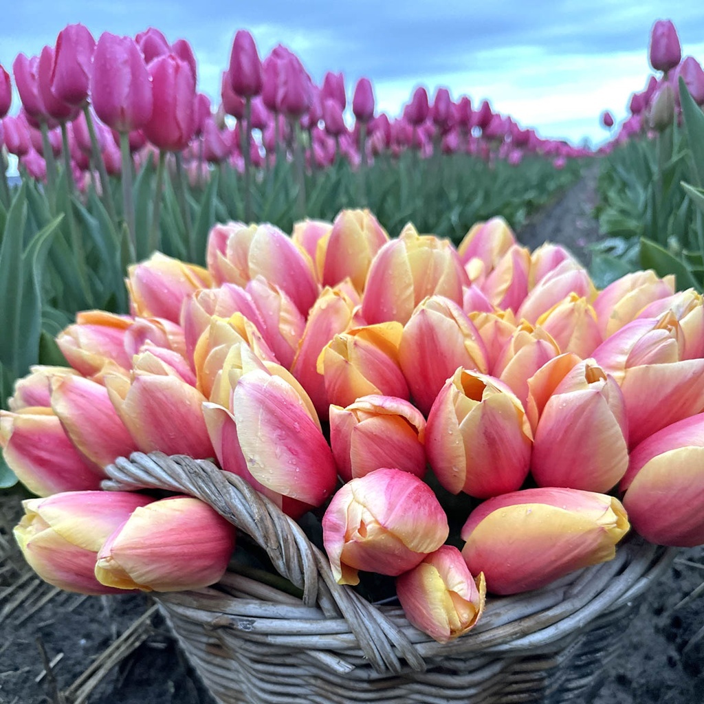 Laat je meevoeren door de zachte gloed van de ondergaande zon... De Sunset Blush-tulpenmix combineert warme perzik-, katoenroze- en subtiel zalm‑tonen, als een schilderij dat met de dag verkleurt.