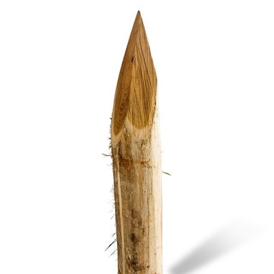 Het hout hoeft niet behandeld te worden voordat het in contact komt met grond of water en hoeft niet in beton gestort te worden. Het beton zorgt namelijk voor een kortere levensduur van de palen, dit komt door het vocht wat tussen de paal en het beton blijft zitten. Bij plaatsing van bijvoorbeeld een raster of een schapenhek omheining adviseren wij de palen minimaal 1/3 in de grond te plaatsen.