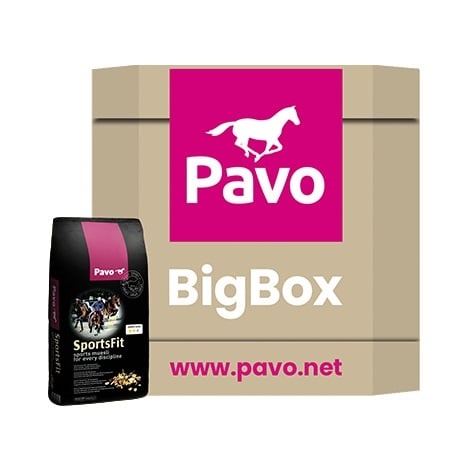 Pavo SportsFit BigBox is de complete, olierijke sportmuesli voor paarden en pony’s die midden tot zware arbeid verrichten. Deze energierijke muesli combineert gepofte granen (voor snelle energie) met lijnzaadolie (voor langdurig uithoudingsvermogen), zodat je paard krachtig én in balans blijft tijdens de training.