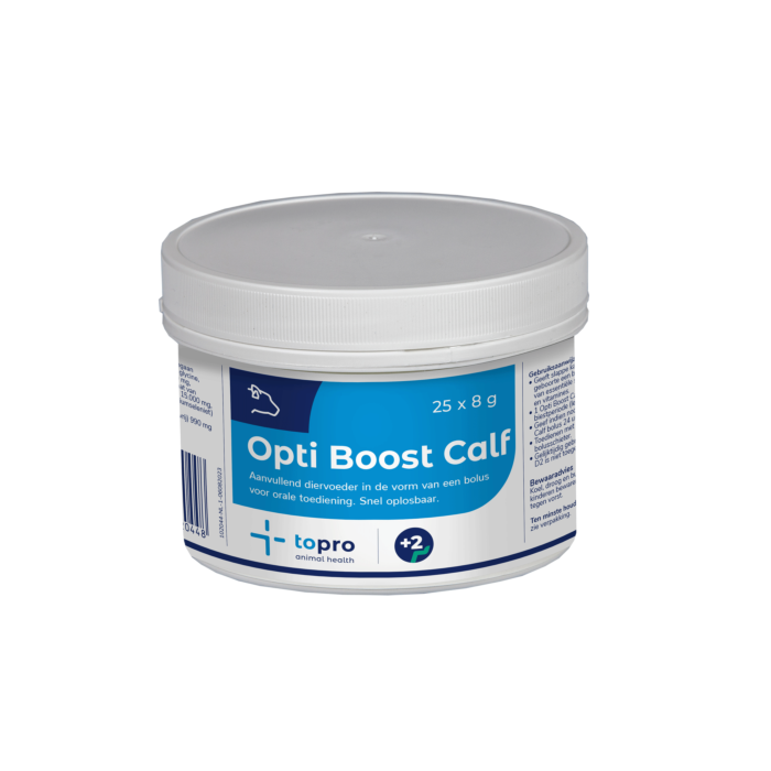 De Topro Opti Boost Calf bolus is een aanvullend diervoeder voor pasgeboren kalveren in de vorm van een bolus die het dier voorziet van dextrose, gist geïnactiveerd, koolzaadolie en calciumstearaat. Lees meer