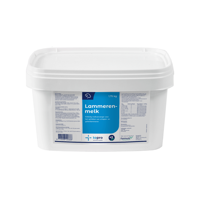 Topro lammerenmelk is een volledig melkvervanger voor het opfokken van schapen- en geitenlammeren. De melk bevat onder andere magere melkpoeder, weipoeder, tarwebloem en calciumcarbonaat.