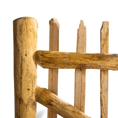 Kastanje veldpoorten vormen een prachtig geheel met het kastanje gekloofd schapenhek. De poortjes zijn gemaakt van hetzelfde duurzame kastanjehout. De kastanje rondhout veldpoort wordt geproduceerd met een authentieke pen-en-gat verbinding.