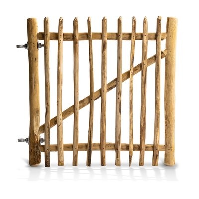 Kastanje veldpoorten vormen een prachtig geheel met het kastanje gekloofd schapenhek. De poortjes zijn gemaakt van hetzelfde duurzame kastanjehout. De kastanje rondhout veldpoort wordt geproduceerd met een authentieke pen-en-gat verbinding.